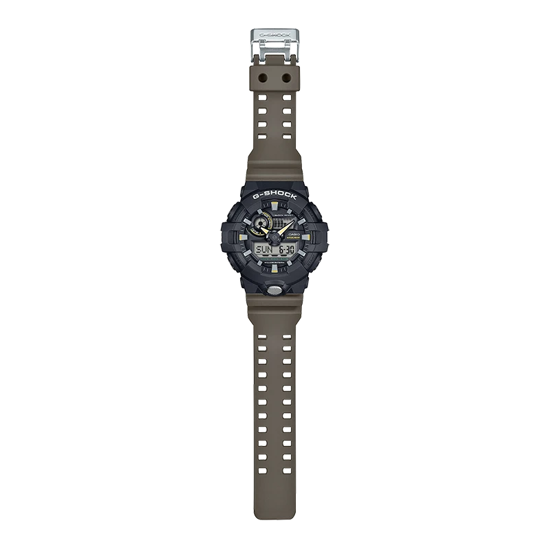 Välj mellan fem basmodeller: DW‑6900 med sin ikoniska trippelgraf eller GA‑700 med stort boettformat — båda med en frontknapp i metall med halkskyddad finish — eller de större boettdesignerna GX‑56, GA‑100 och GA‑110.