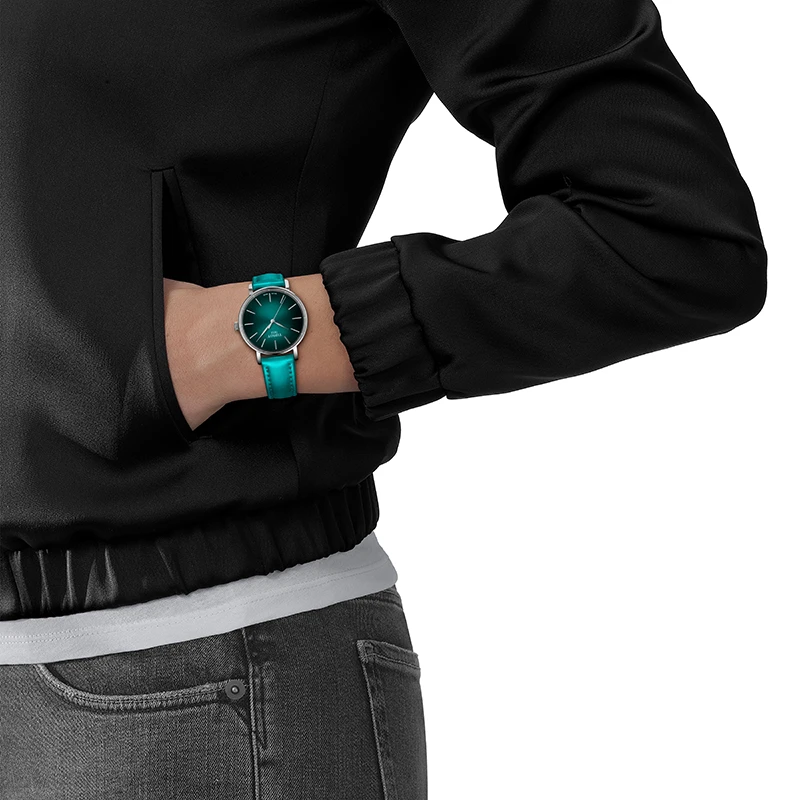 Urtavlan i turkos med en mjuk övergång mot svart ger klockan ett samtida uttryck med en unik färgdjupskänsla. Det reptåliga safirglaset håller klockan klar och ren över tid, medan det schweiziska quartzverket ger pålitlig precision i alla sammanhang. Everytime är framtagen för att vara enkel att bära och lika enkel att anpassa. Tack vare quick release funktionen kan du snabbt byta armband och uttrycka din stil från dag till dag.